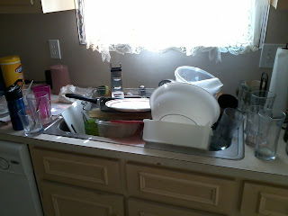 Well August has not been our month. Eric had his surgery, and he came through just fine, but he IS still recovering. Ray had his appendix out. He is going back to school on Monday (just look in my face how sad I am about all the boys FINALLY being in school) and the doctor said that he healed up quite well. Christopher had to get his Varicella shot since he never had chicken pox when he was little. That caused him to have a little fever and a very very sore arm for a few days. Stephen is currently sick with a nasty cold. He says he sounds like he's going through puberty again... although I don't think he needs a deeper voice LOL. And then there's me, I have had mono for about 2 weeks apparently. This is good to know because I have just been assuming that I'm lazy since I need a nap every day and to go to bed early. :) Now I at least have an excuse for going into the only quiet room in the house. All I ask of everyone is please know that I went to my doctor's appointment yesterday morning. In one afternoon/evening of being sick my kitchen turned into this: